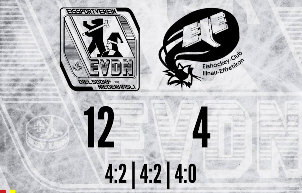 Der EVDN kann seine Siegesserie fortsetzen und schlägt den Kantonsrivalen aus Illnau-Effretikon zuhause mit 12:4.