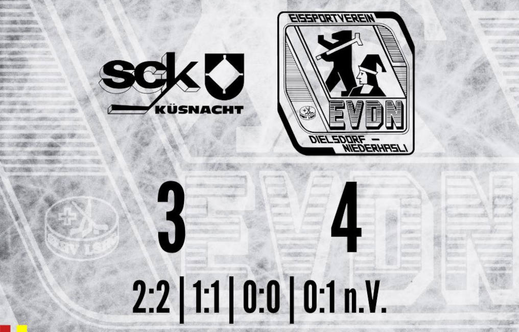 Im dritten Drittel neutralisierten sich beide Teams weitgehend. Trotz guter Chancen – unter anderem ein Penaltyschuss für den EVDN – fielen keine Tore, sodass die Entscheidung in der Verlängerung fallen musste. Dort schlug der EVDN eiskalt zu: Remo Ottiger erzielte in Überzahl nach 48 Sekunden den entscheidenden Treffer und sicherte seinem Team den viel umjubelten 4:3-Auswärtssieg.